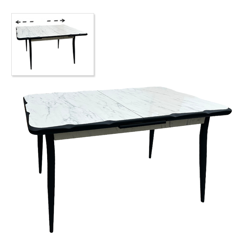 Original price was: 62,00 €.49,90 €Η τρέχουσα τιμή είναι: 49,90 €.Τραπέζι Karen Megapap επεκτεινόμενο χρώμα λευκό εφέ μαρμάρου – μαύρο 130/160x80x75εκ.