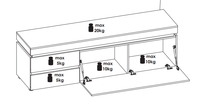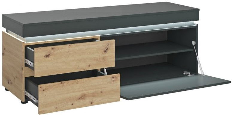 Έπιπλο τηλεόρασης Glimmer, μοναδικού σχεδιασμού με λεπτομέρειες διχρωμίας που προσδίδουν στυλ και φωτισμό led που αποφέρει υψηλή αισθητική. Θα σας προσφέρει ευρύχωρο αποθηκευτικό χώρο που θα καλύψει όλες τις ανάγκες σας, ενώ οι πρακτικές του διαστάσεις το καθιστούν ιδανική επιλογή για κάθε σαλόνι.