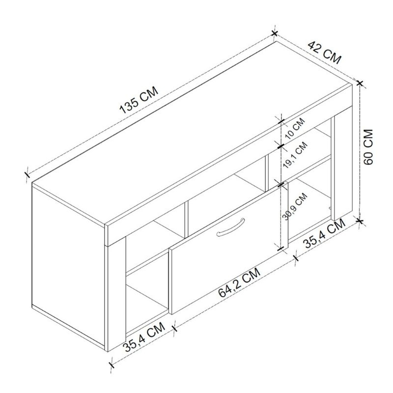 • Διαστάσεις: Μήκος 135 x Βάθος 42 x Ύψος 60,7 εκ.