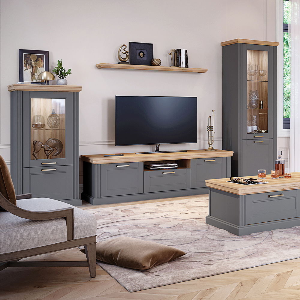 Το έπιπλο τηλεόρασης Tahoma 2D1S θα εμπλουτίσει τον χώρο του σαλονιού σας με κλασικό στυλ με μοντέρνες λεπτομέρειες που προσδίδουν υψηλή αισθητική, ενώ οι πρακτικές του διαστάσεις το καθιστούν ιδανική επιλογή.