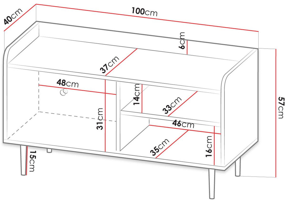 Το έπιπλο τηλεόρασης Vasina 100, είναι η πιο πρακτική λύση για περιορισμένους χώρους και μικρά σαλόνια. Παρά τις μικρές του διαστάσεις, μπορούν όλοι οι χώροι του να αξιοποιηθούν για αποθήκευση ή διακόσμηση, ενώ ο μοντέρνος σχεδιασμός του θα συνδυαστεί άψογα με τη συσκευή της τηλεόρασής σας.