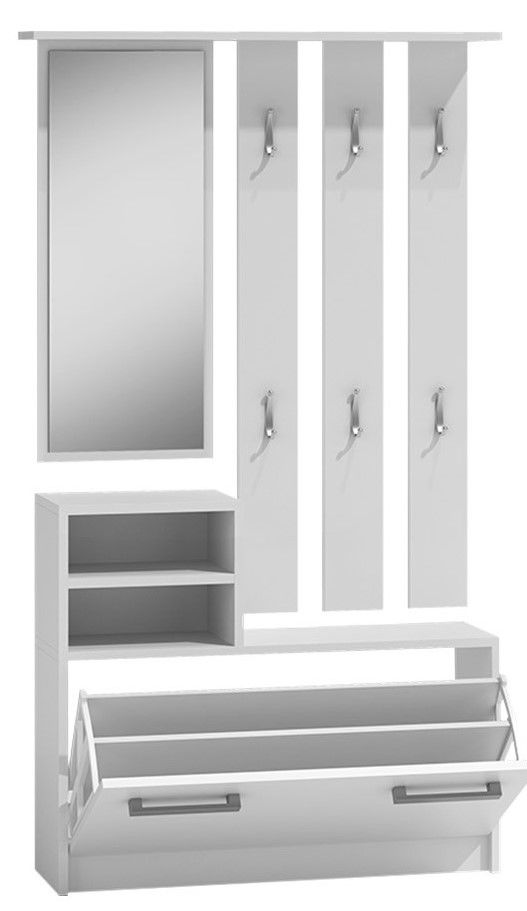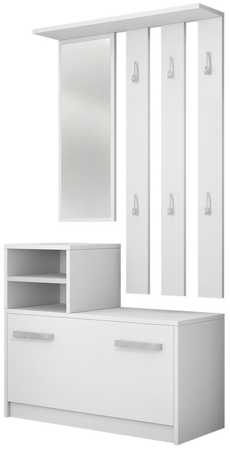 Το έπιπλο υποδοχής Kolom, μια πολυλειτουργική και έτοιμη λύση για το σπίτι σας. Αποτελείται από δύο μέρη χάρη στα οποία η προσαρμογή ύψους γίνεται ανάλογα τς προτιμήσεις σας. Ο μεγάλος καθρέπτης προσφέρει μια ολοκληρωμένη εικόνα, οι 6 κρεμάστρες αποτελούν εξαιρετική λύση για να κρεμάτε τα ρούχα καθώς και η παπουτσοθήκη διαθέτει χώρο για 8-9 ζευγάρια παπουτσιών.