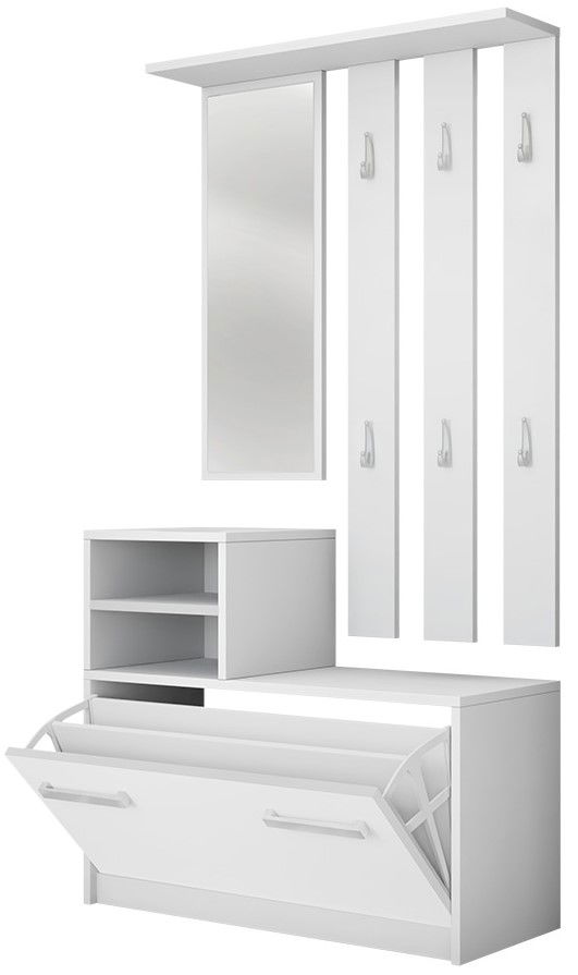 Το έπιπλο υποδοχής Kolom, μια πολυλειτουργική και έτοιμη λύση για το σπίτι σας. Αποτελείται από δύο μέρη χάρη στα οποία η προσαρμογή ύψους γίνεται ανάλογα τς προτιμήσεις σας. Ο μεγάλος καθρέπτης προσφέρει μια ολοκληρωμένη εικόνα, οι 6 κρεμάστρες αποτελούν εξαιρετική λύση για να κρεμάτε τα ρούχα καθώς και η παπουτσοθήκη διαθέτει χώρο για 8-9 ζευγάρια παπουτσιών.