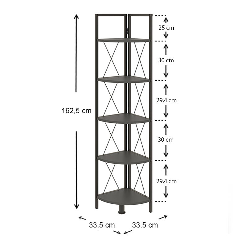 Βιβλιοθήκη γωνιακή Kelsie Megapap χρώμα μαύρο – ανθρακί 33x33x162εκ.
