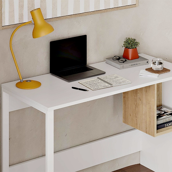 Γραφείο εργασίας Cubo Megapap χρώμα λευκό – sapphire oak 110x50x75εκ.