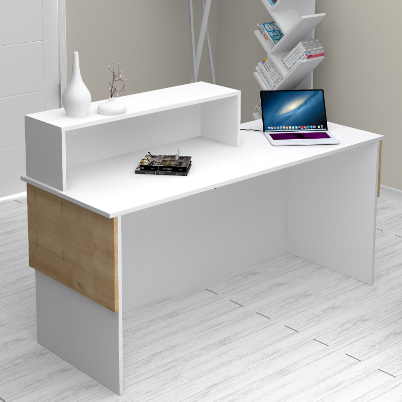 Γραφείο υποδοχής – reception Dustin Megapap χρώμα λευκό – φυσικό οξιάς 160x60x101,8εκ.