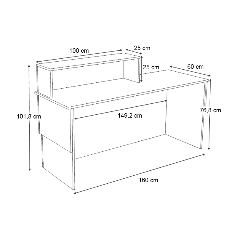 - Διαστάσεις: Μήκος 160 x Βάθος 60 x Ύψος 101,8 εκ.