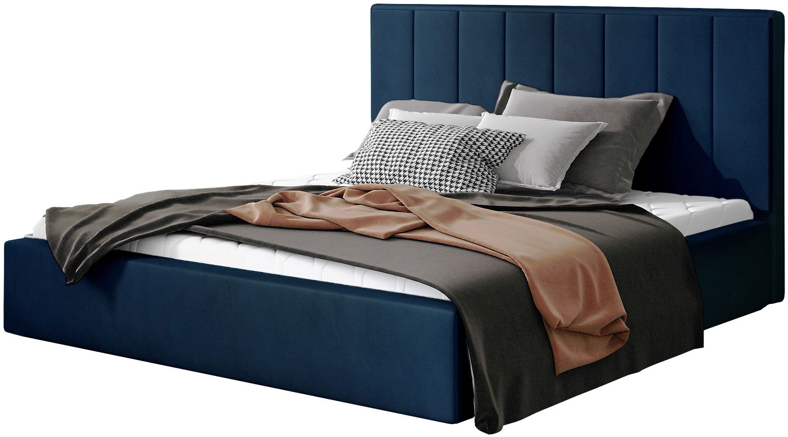 Επενδυμένο κρεβάτι Dobrik-160 x 200-Μπλέ-Με μηχανισμό ανύψωσης