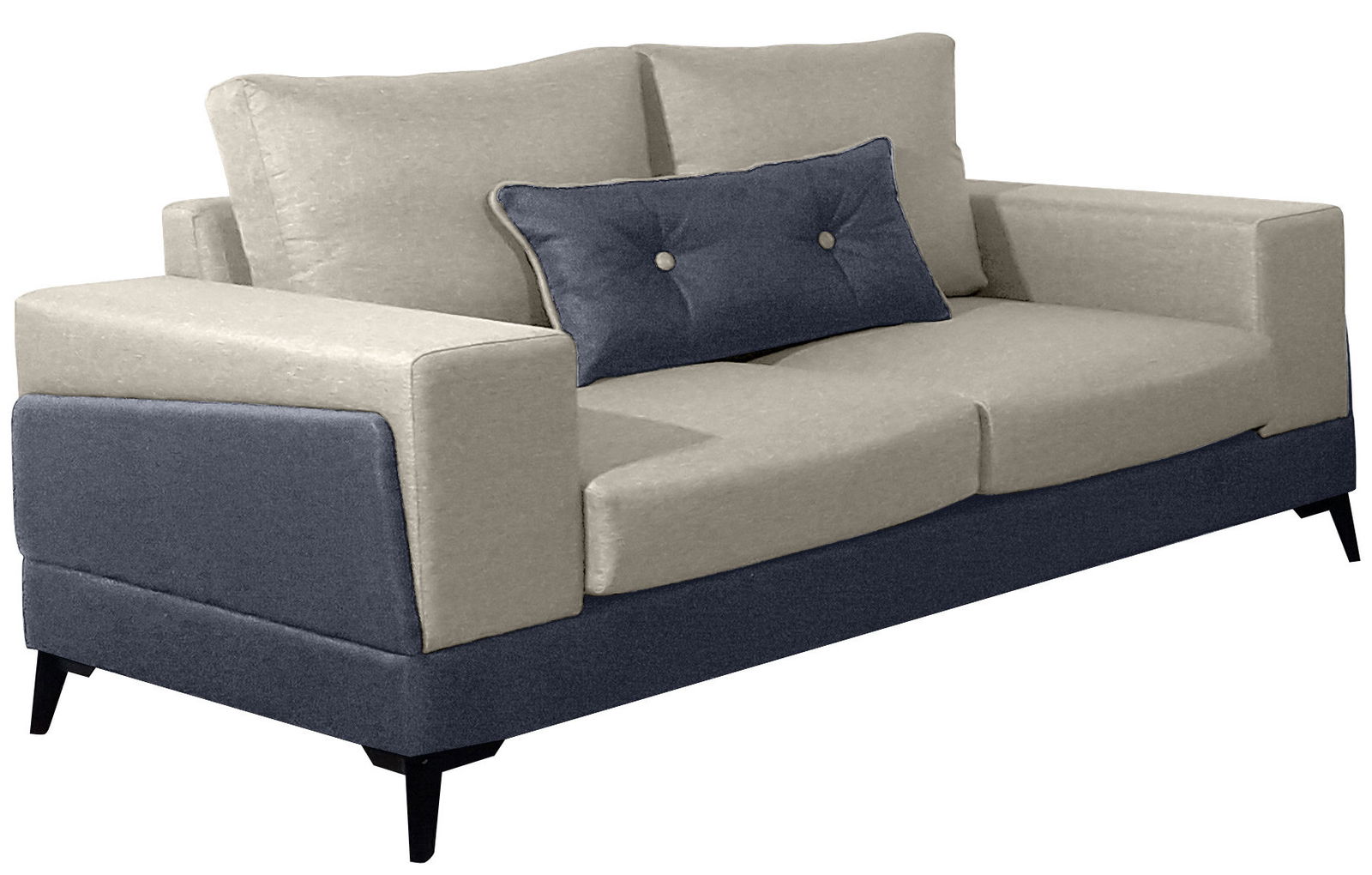 Διθέσιος καναπές Palma με επιρροές Σκανδιναβικού σχεδιασμού στο ποδαρικό. Η διχρωμία του καναπέ, αναβαθμίζει την αισθητική του χώρου σας. Διακριτικό καπιτονέ σχέδιο στο μαξιλάρι φιγούρας.