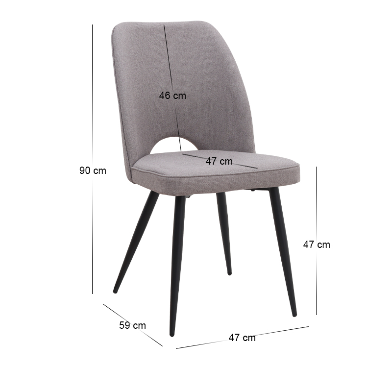 Η καρέκλα Christy αποπνέει σοφιστικέ κομψότητα και διαχρονικό στυλ. Το υφασμάτινο κάθισμα με αναπαυτικό μαξιλάρι και το διακριτικό άνοιγμα στην πλάτη δημιουργούν μια ζεστή και φιλόξενη αίσθηση, ενώ τα μαύρα μεταλλικά πόδια προσφέρουν σταθερότητα και σύγχρονο χαρακτήρα. Ιδανική για τη τραπεζαρία του σπιτιού, αλλά και για επαγγελματικούς χώρους όπως καφέ, εστιατόρια ή AirBnB, όπου η αισθητική λεπτομέρεια κάνει τη διαφορά.