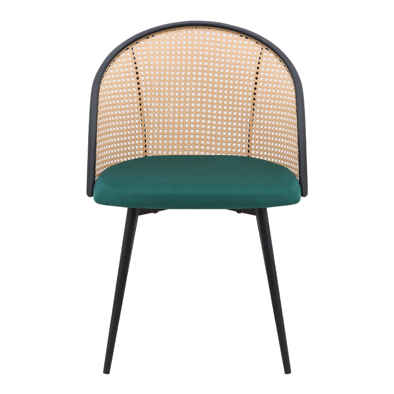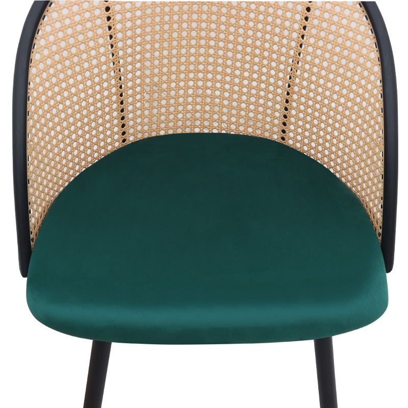 • Χρώμα: Κυπαρισσί βελούδινο κάθισμα – πλάτη pe rattan σε φυσικό χρώμα – μαύρα μεταλλικά πόδια.
