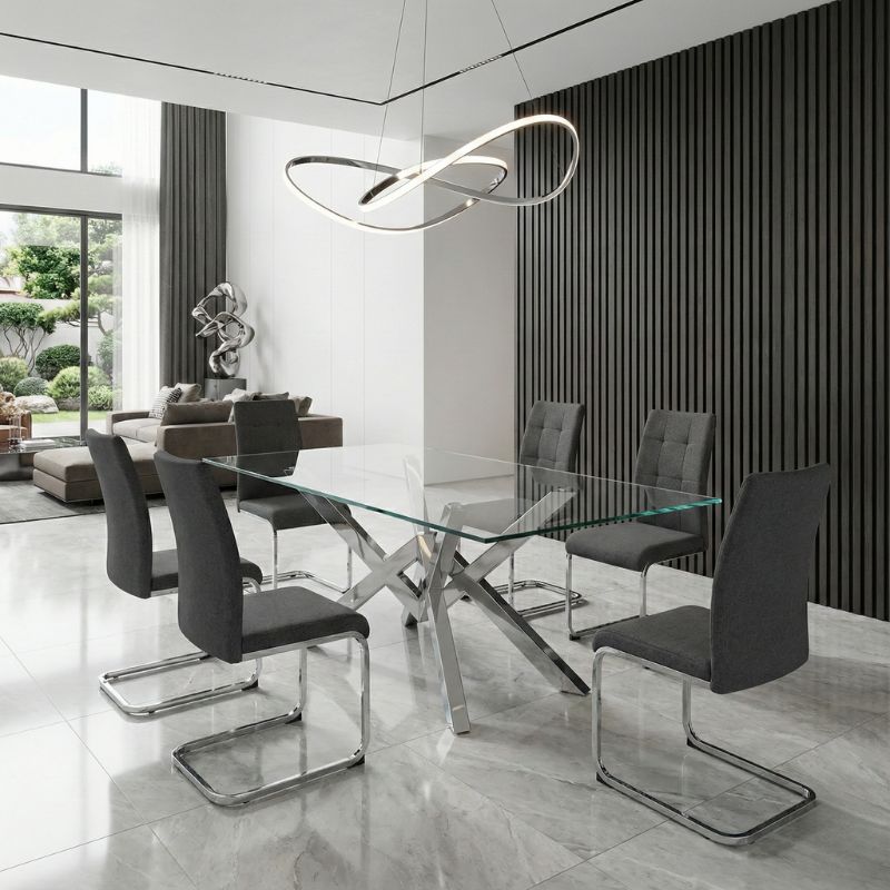 Καρέκλα τραπεζαρίας Laura Megapap γκρι ύφασμα – μεταλλική βάση χρωμίου 42x58x98εκ.