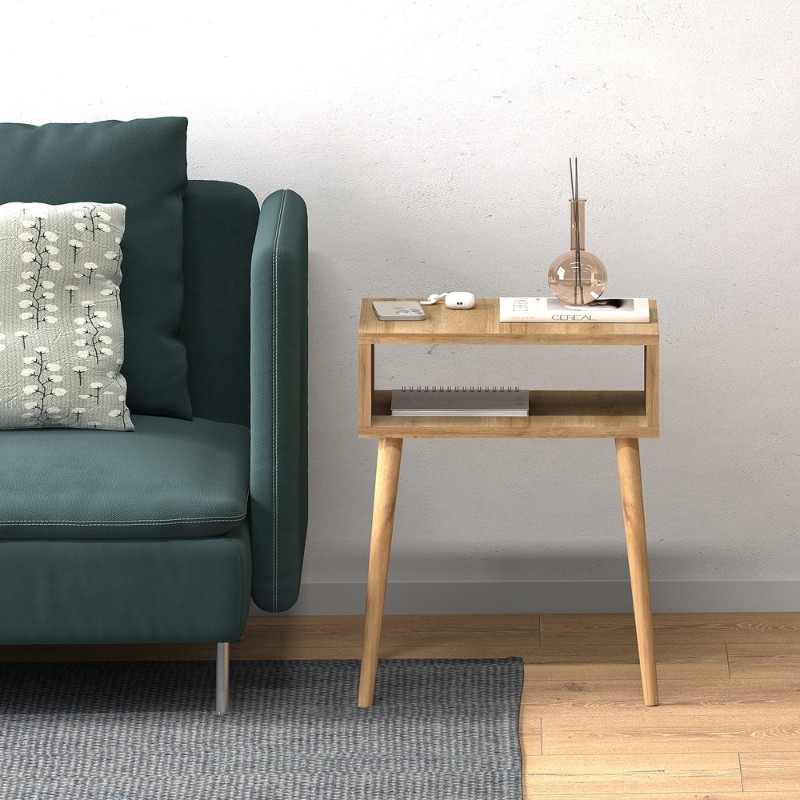 - Εκτός από την επιφάνειά του, όπου μπορείτε ν’ ακουμπήσετε ό,τι επιθυμείτε, το κομοδίνο φέρει κι ένα ράφι ακριβώς κάτω από αυτήν.
