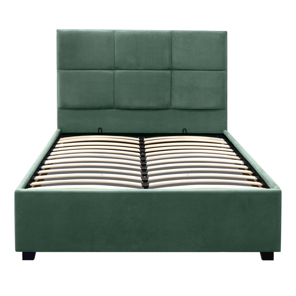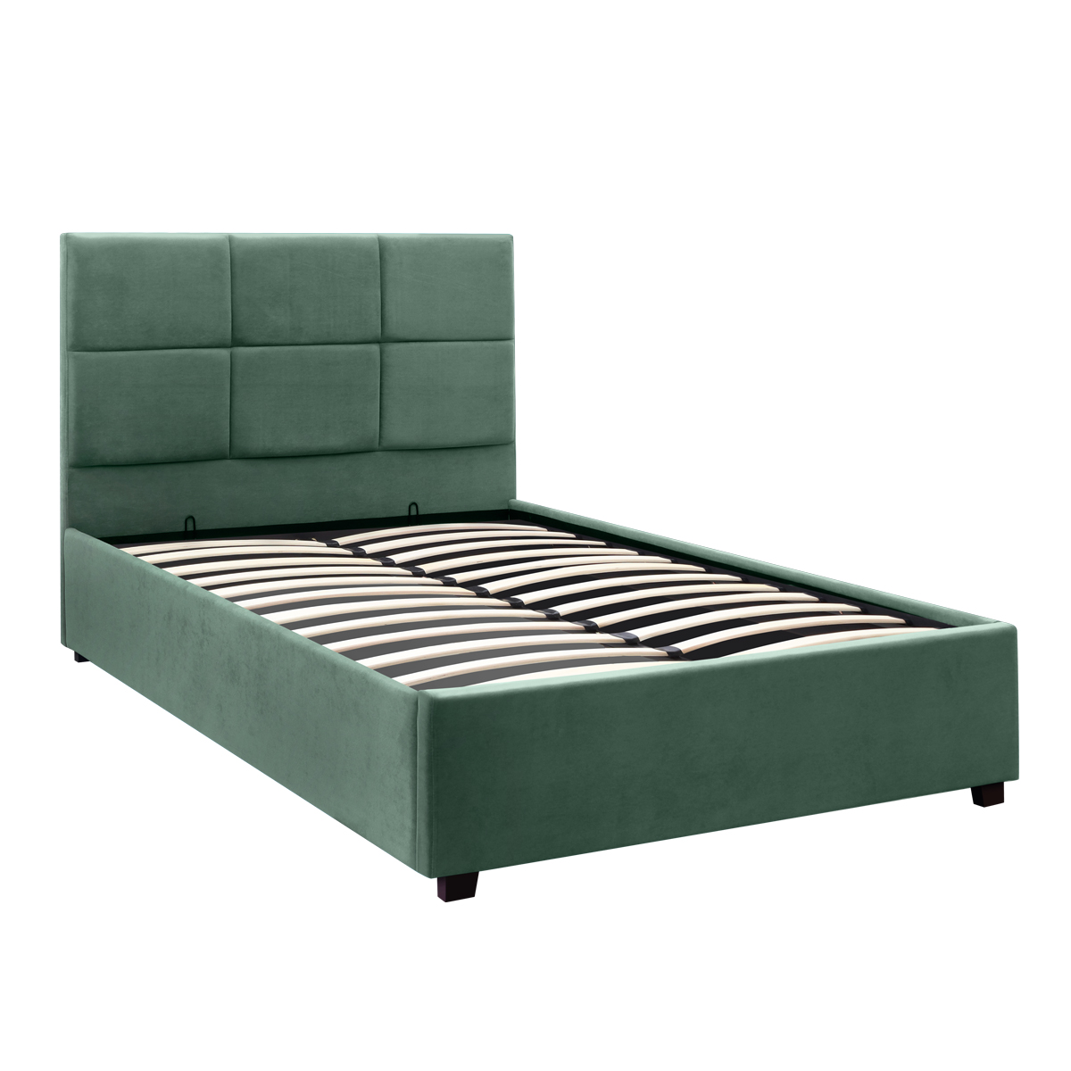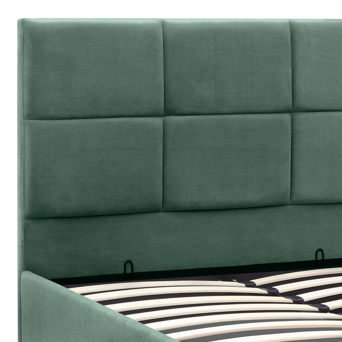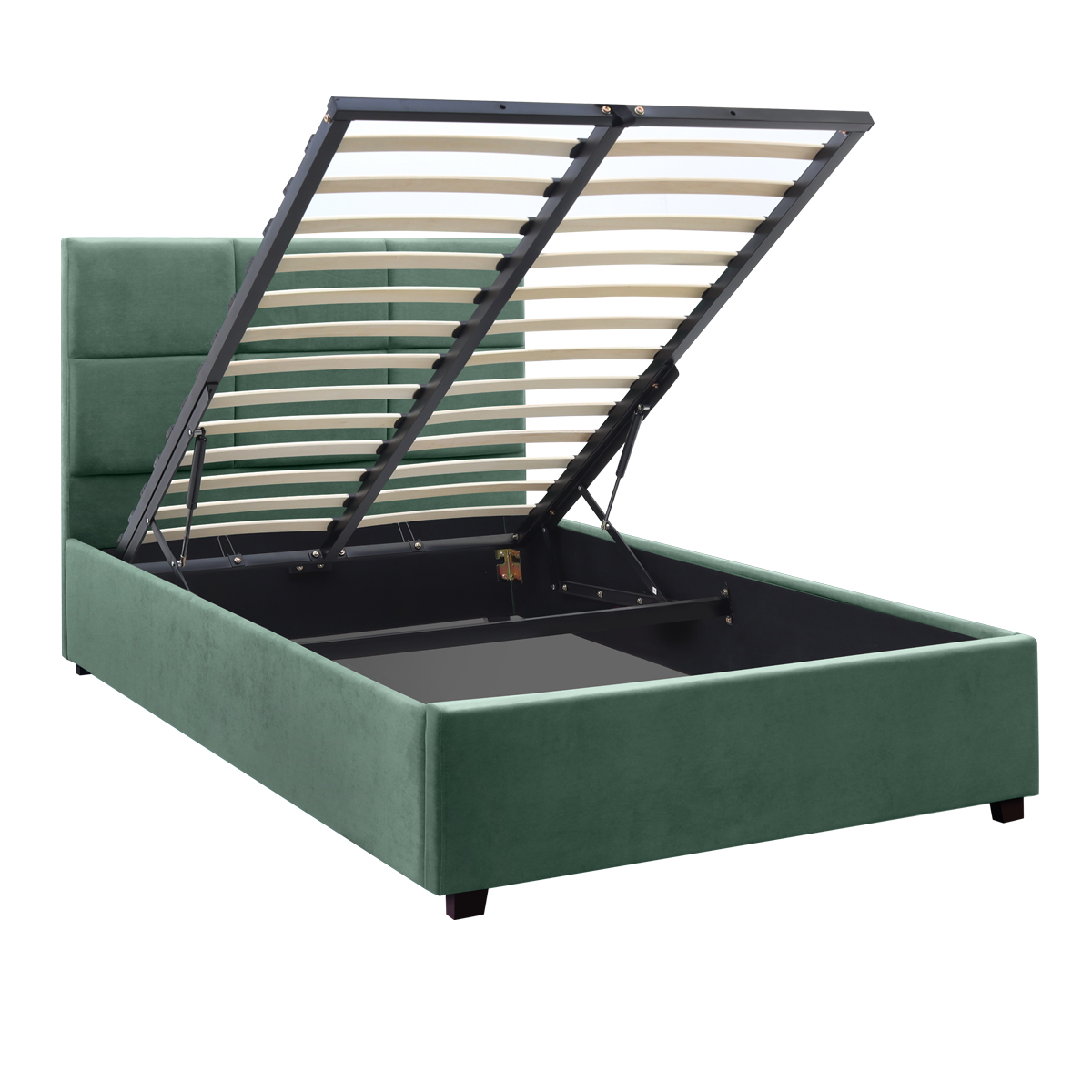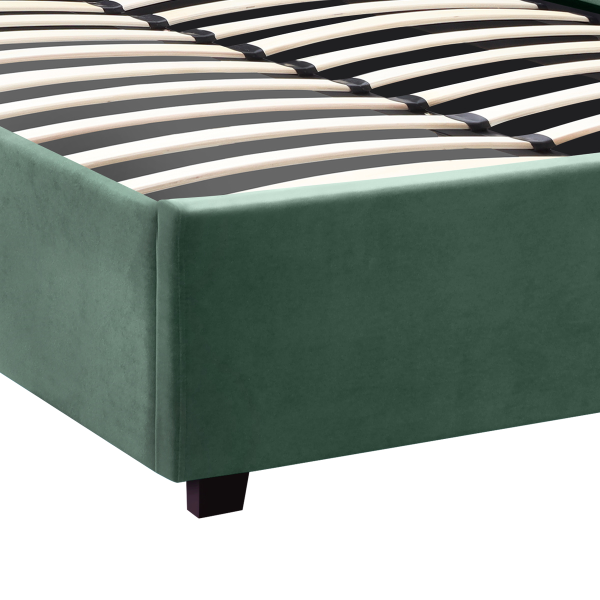 Κρεβάτι Kingston Megapap βελούδινο με αποθηκευτικό χώρο χρώμα κυπαρισσί 120×200εκ.