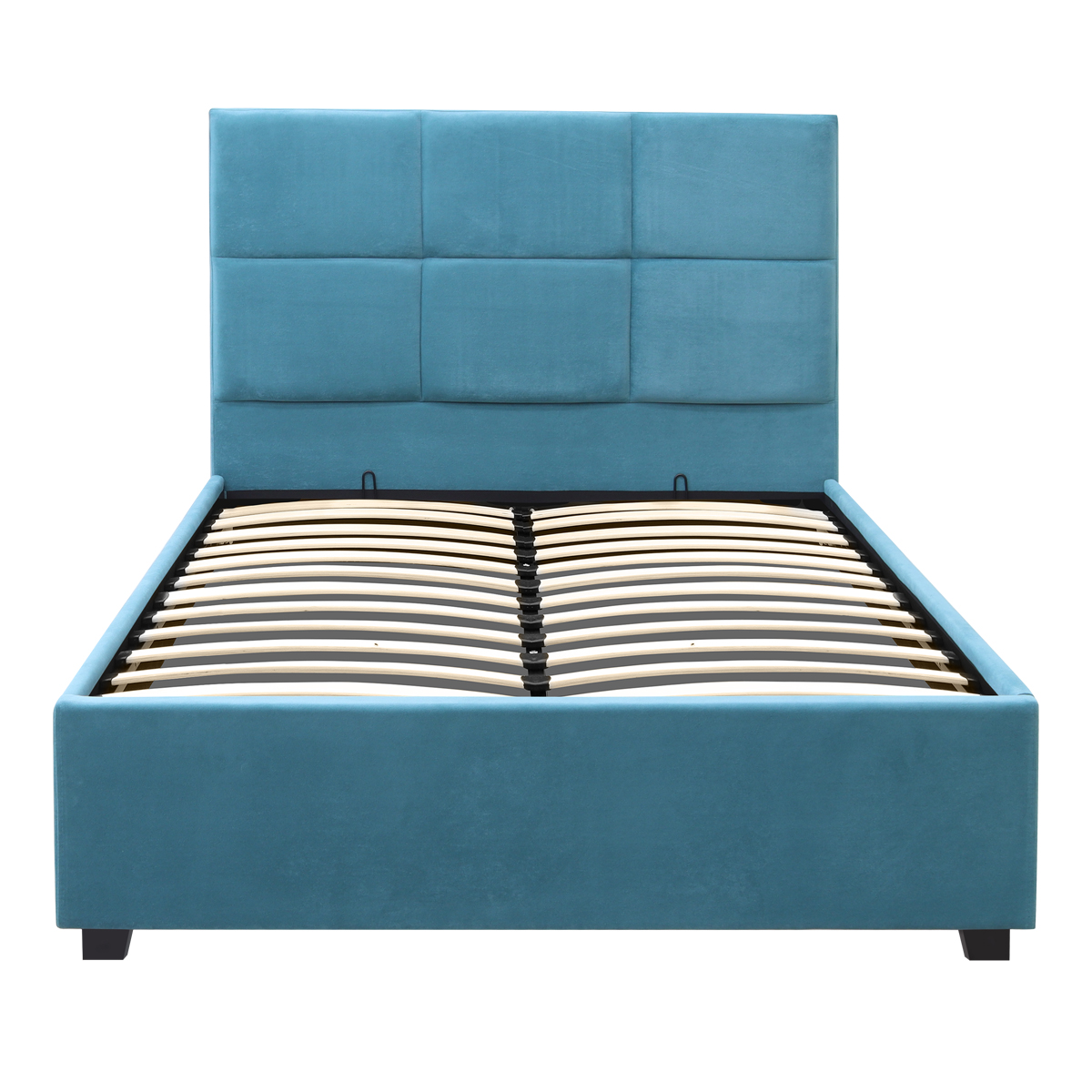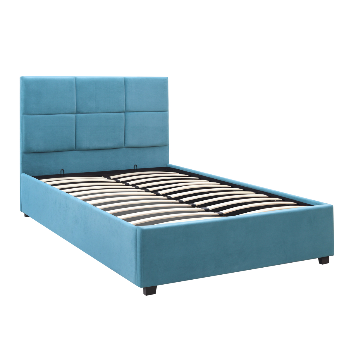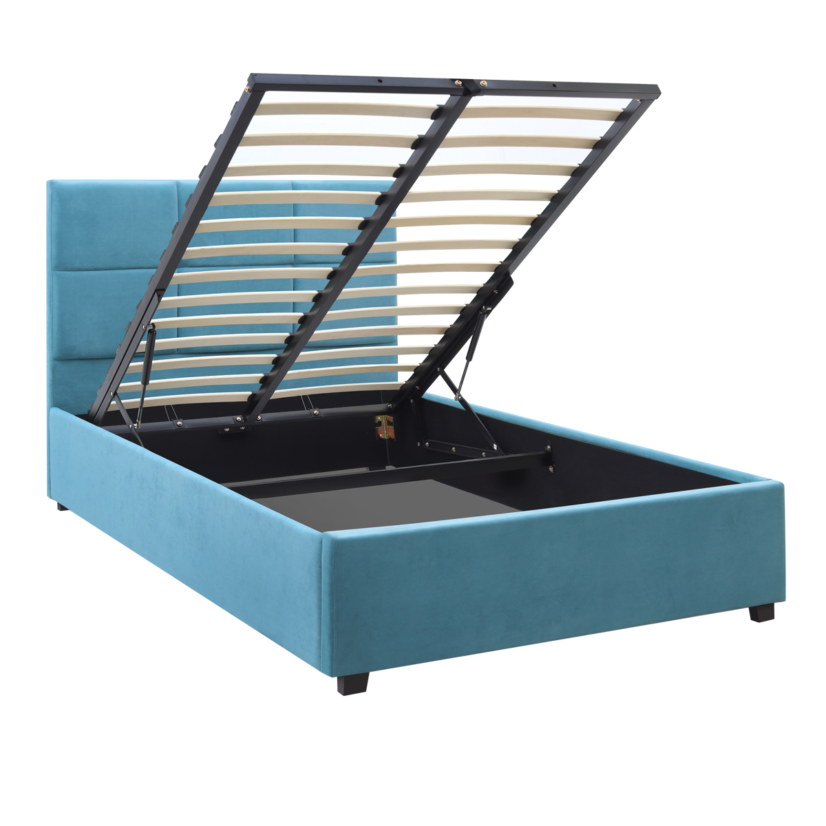 Κρεβάτι Kingston Megapap βελούδινο με αποθηκευτικό χώρο χρώμα γαλάζιο 120×200εκ.