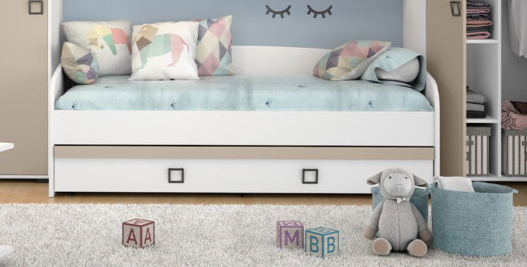 Κρεβάτι Riddle 90, σε κλασικό μινιμαλ σχεδιασμό, με πρακτικές διαστάσεις που το καθιστούν ιδανική επιλογή για κάθε παιδικό δωμάτιο.