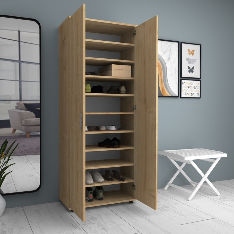 Ντουλάπα ρούχων – παπουτσοθήκη Eric Megapap δίφυλλη χρώμα φυσικό οξιάς 76x36x187εκ.