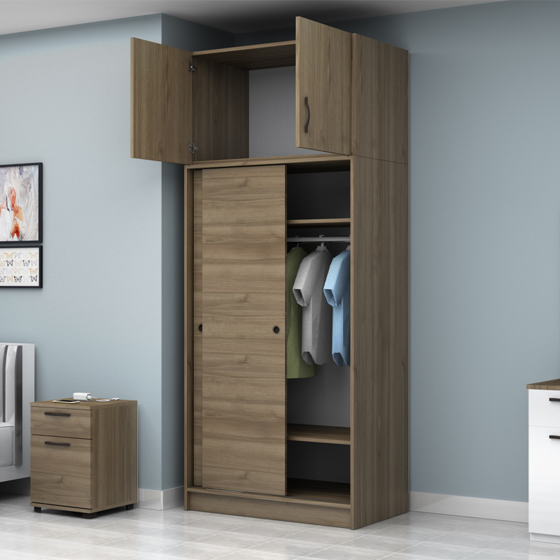 Ντουλάπα ρούχων Regio Megapap δίφυλλη συρόμενη με πατάρι χρώμα καρυδί 100x60x240εκ.