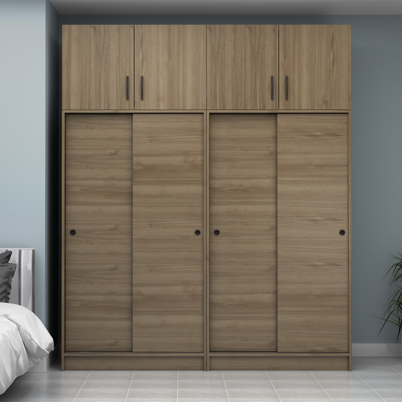 Ντουλάπα ρούχων Regio Megapap τετράφυλλη συρόμενη με πατάρι χρώμα καρυδί 200x60x240εκ.