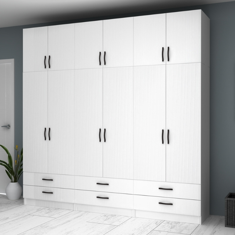 Ντουλάπα ρούχων Ricardo Megapap εξάφυλλη με πατάρι και συρτάρια χρώμα λευκό 240×51,8×240εκ.