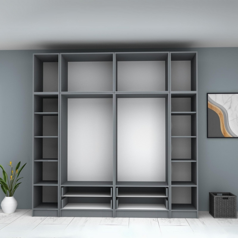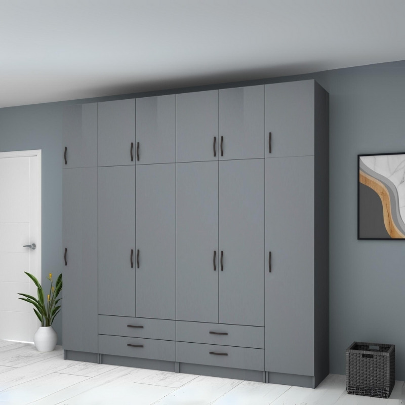 Ντουλάπα ρούχων Ricardo Megapap εξάφυλλη με πατάρι και συρτάρια χρώμα ανθρακί 240×51,8×240εκ.