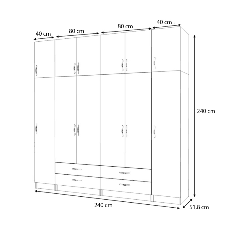 • Διαστάσεις ντουλάπας: Μήκος 240 x Βάθος 51,8 x Ύψος 240 εκ.
