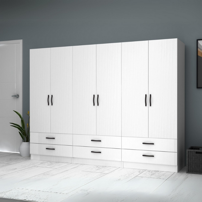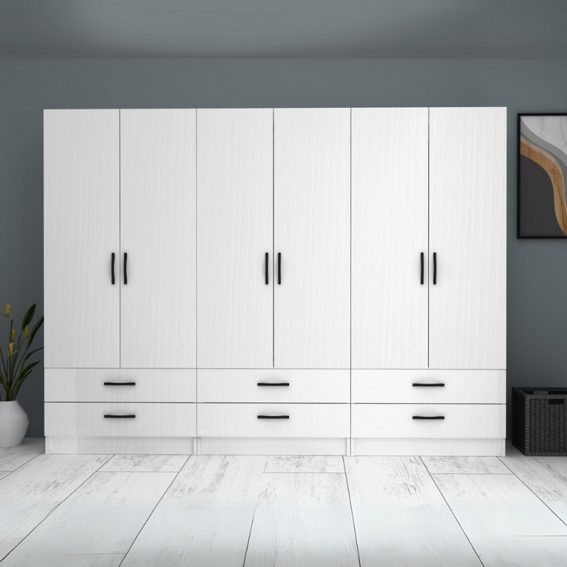 Ντουλάπα ρούχων Ricardo Megapap εξάφυλλη με συρτάρια χρώμα λευκό 240×51,8×181εκ.