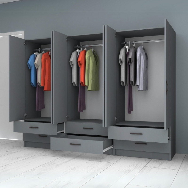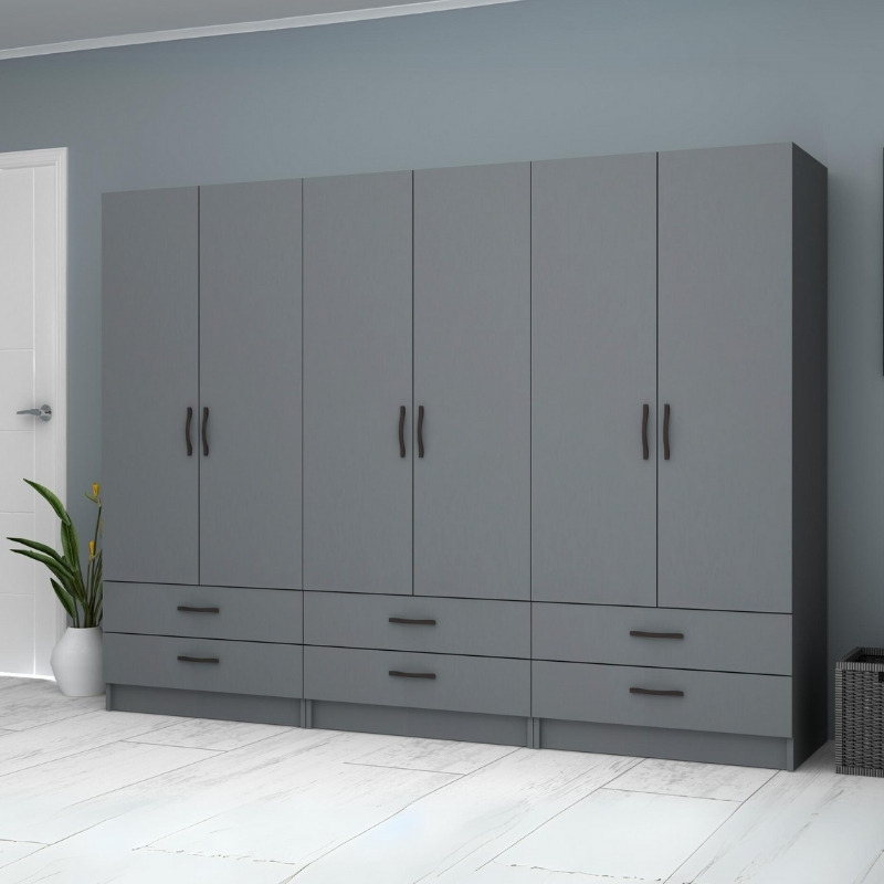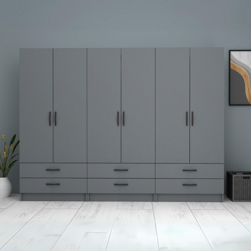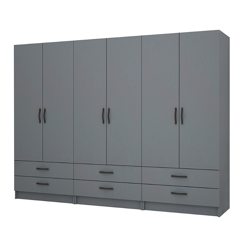 Ντουλάπα ρούχων Ricardo Megapap εξάφυλλη με συρτάρια χρώμα ανθρακί 240×51,8×181εκ.