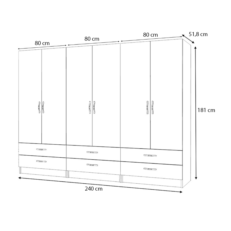 - Διαστάσεις ντουλάπας: Μήκος 240 x Βάθος 51,8 x Ύψος 181 εκ.