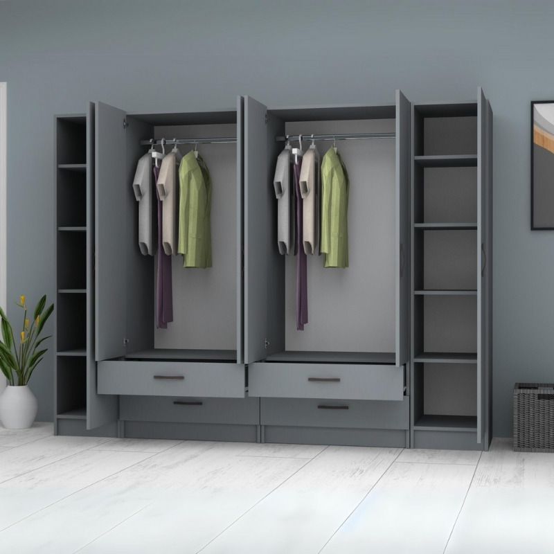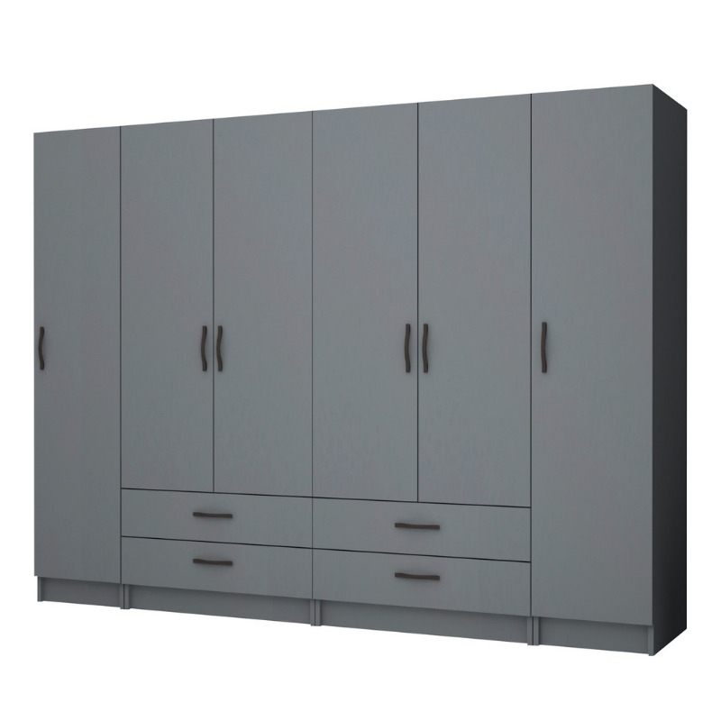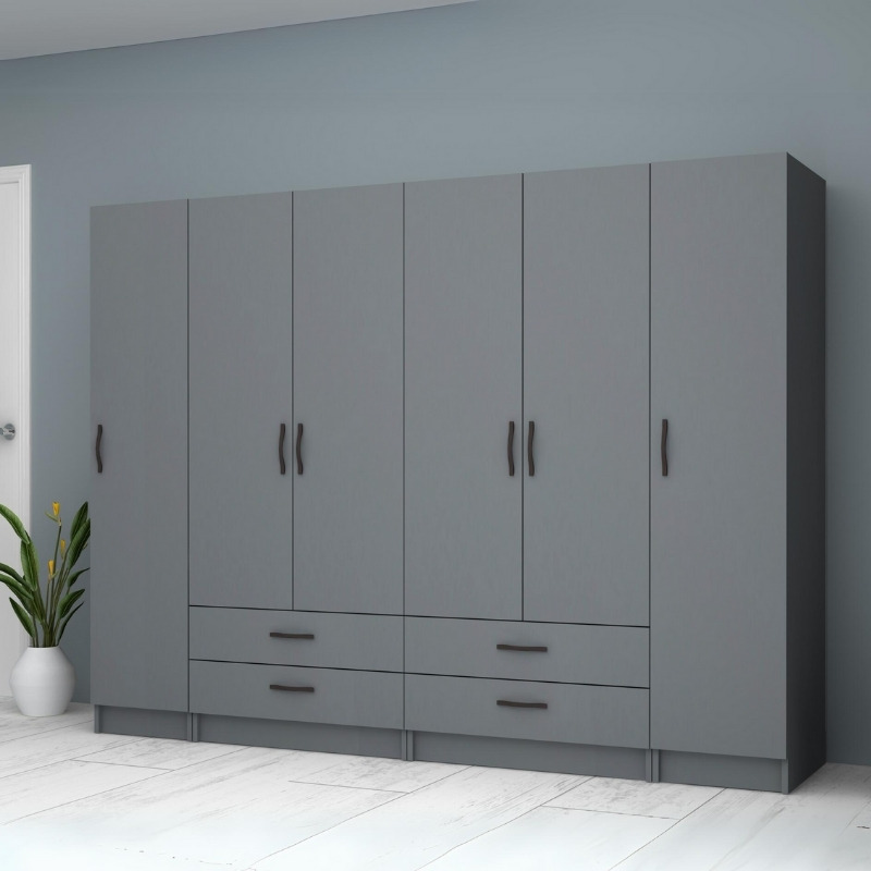 Ντουλάπα ρούχων Ricardo Megapap εξάφυλλη με συρτάρια χρώμα ανθρακί 240×51,8×181εκ.
