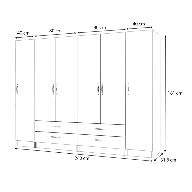 - Διαστάσεις ντουλάπας: Μήκος 240 x Βάθος 51,8 x Ύψος 181 εκ.