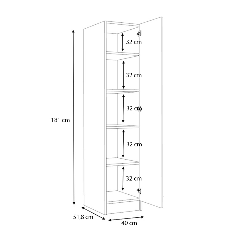 - Διαστάσεις ντουλάπας: Μήκος 40 x Βάθος 51,8 x Ύψος 181 εκ.