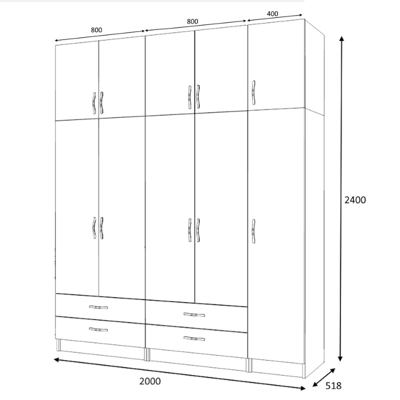 - Διαστάσεις ντουλάπας: Μήκος 200 x Βάθος 51,8 x Ύψος 240 εκ.
