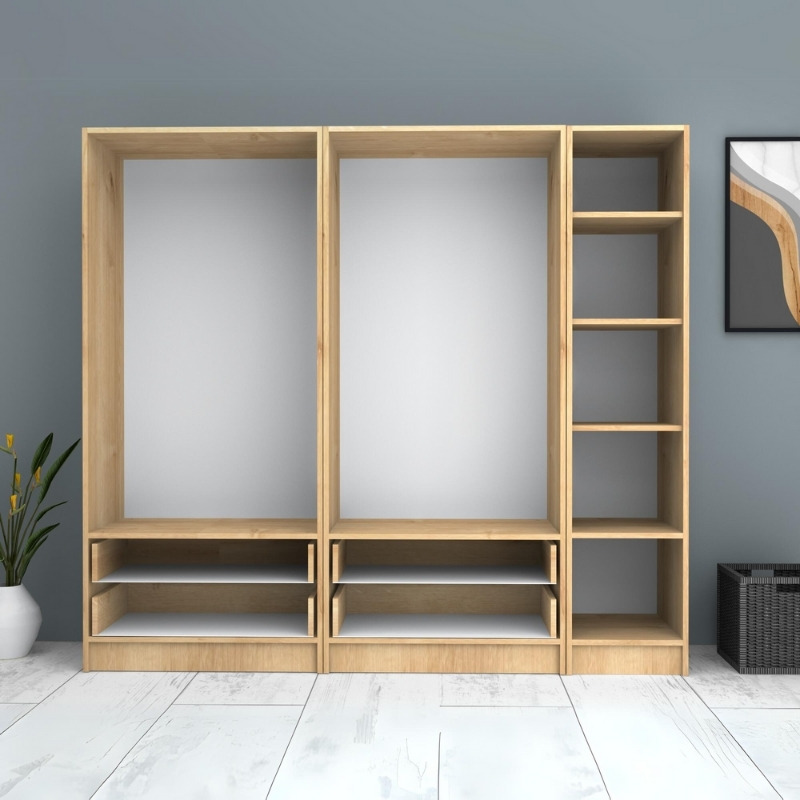 Ντουλάπα ρούχων Ricardo Megapap πεντάφυλλη με συρτάρια χρώμα φυσικό οξιάς 200×51,8×181εκ.