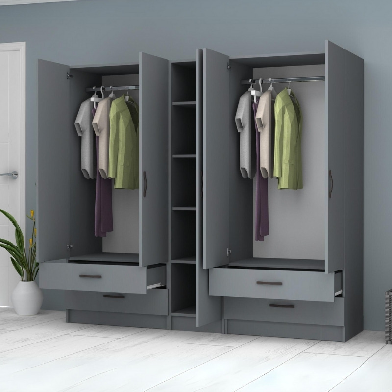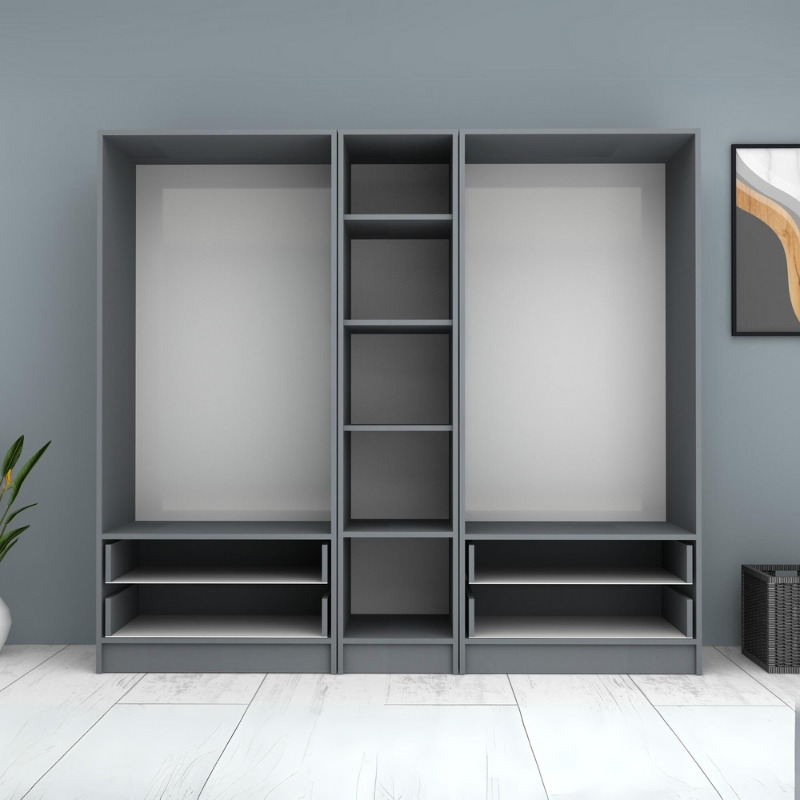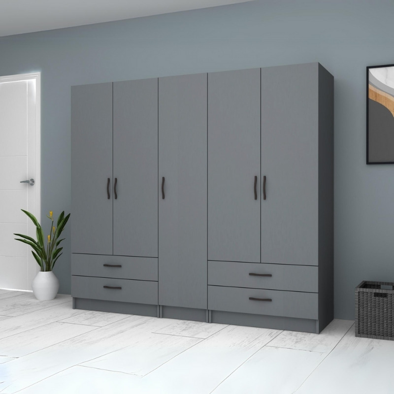 Ντουλάπα ρούχων Ricardo Megapap πεντάφυλλη με συρτάρια χρώμα ανθρακί 200×51,8×181εκ.
