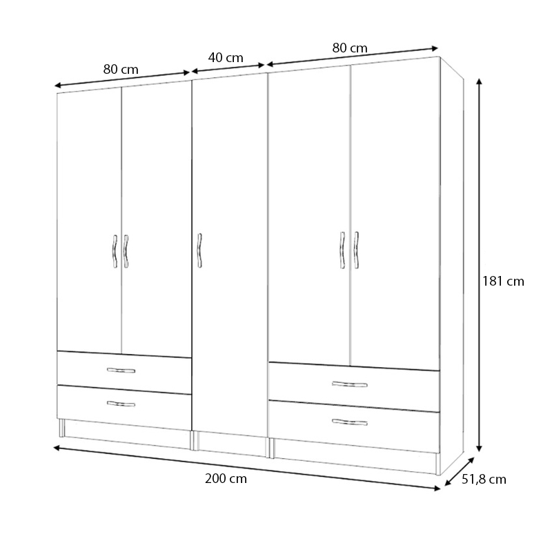 - Διαστάσεις ντουλάπας: Μήκος 200 x Βάθος 51,8 x Ύψος 181 εκ.