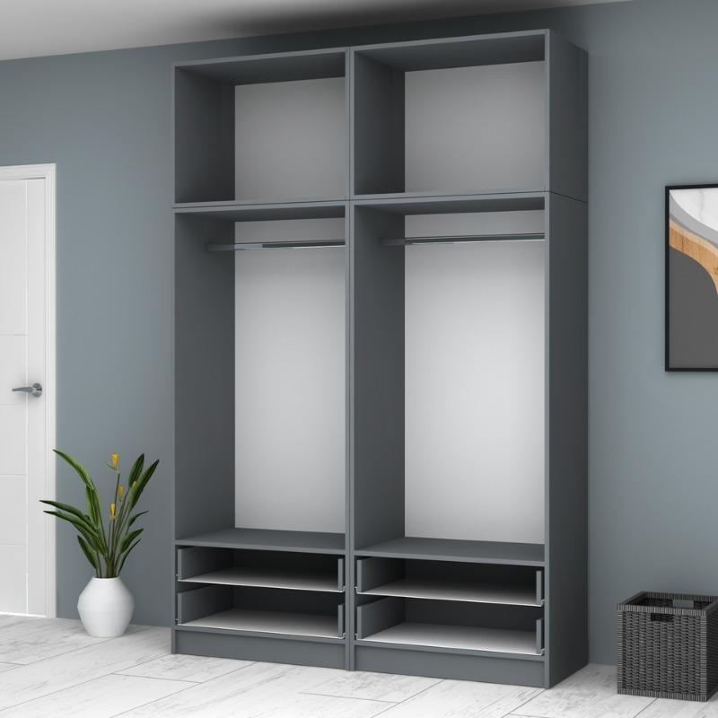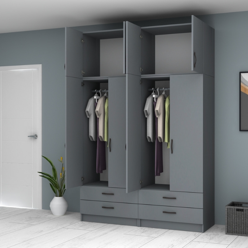 Ντουλάπα ρούχων Ricardo Megapap τετράφυλλη με πατάρι και συρτάρια χρώμα ανθρακί 160×51,8×240εκ.