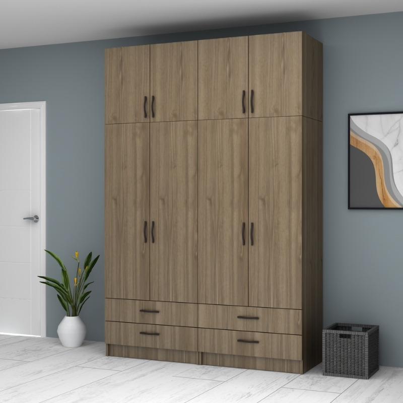 Ντουλάπα ρούχων Ricardo Megapap τετράφυλλη με πατάρι και συρτάρια χρώμα καρυδί 160×51,8×240εκ.