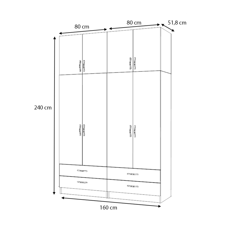 • Διαστάσεις ντουλάπας: Μήκος 160 x Βάθος 51,8 x Ύψος 181 εκ.