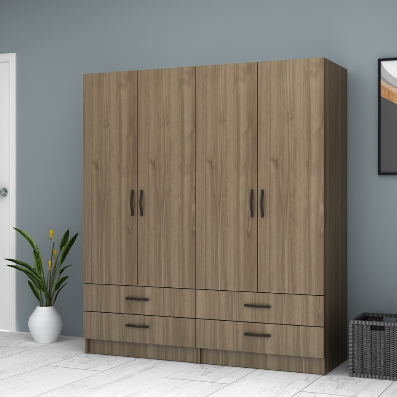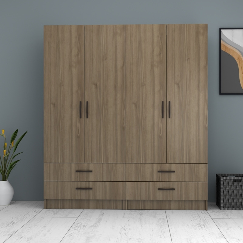 Ντουλάπα ρούχων Ricardo Megapap τετράφυλλη με συρτάρια χρώμα καρυδί 160×51,8×181εκ.