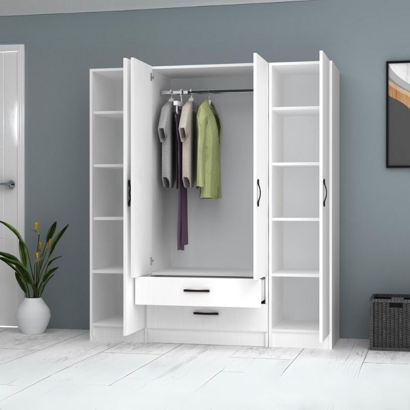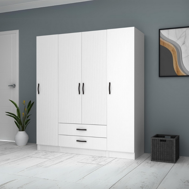 Ντουλάπα ρούχων Ricardo Megapap τετράφυλλη με συρτάρια χρώμα λευκό 160×51,8×181εκ.
