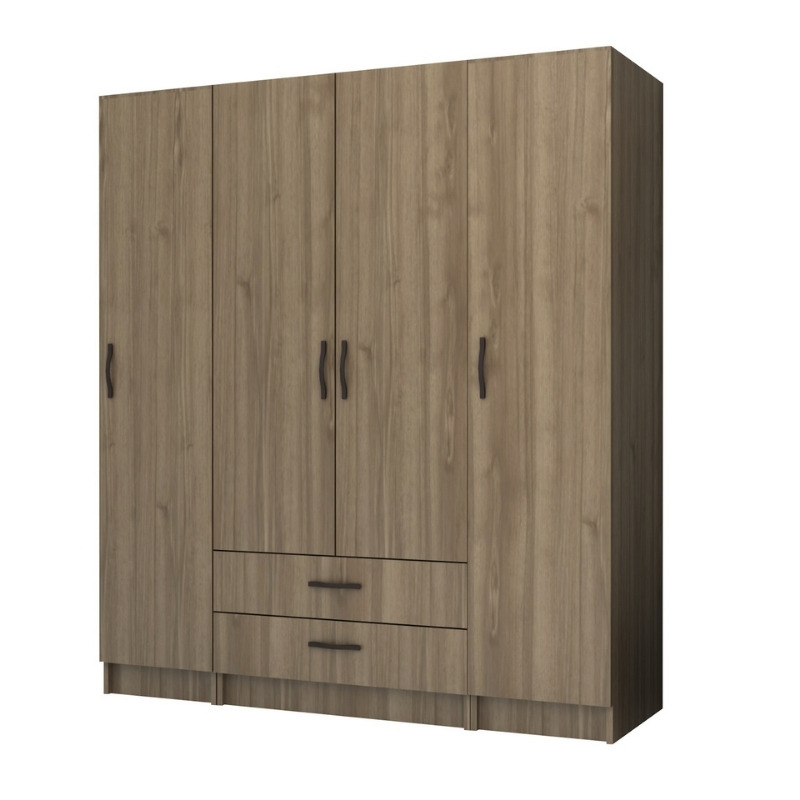 Ντουλάπα ρούχων Ricardo Megapap τετράφυλλη με συρτάρια χρώμα καρυδί 160×51,8×181εκ.
