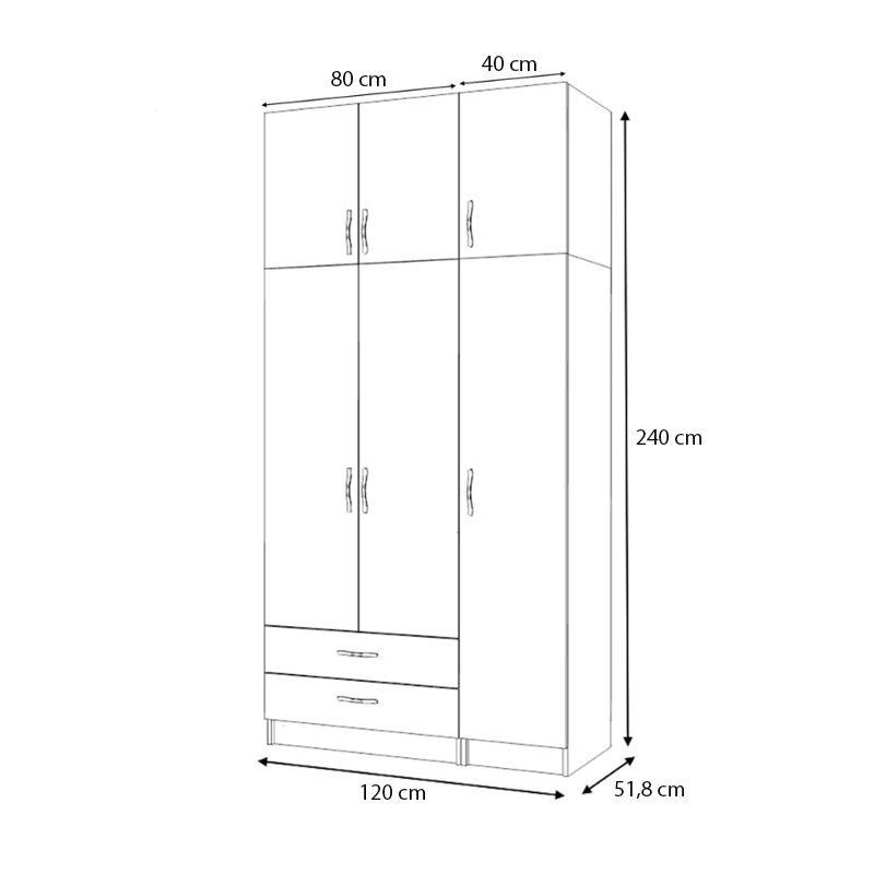 - Διαστάσεις ντουλάπας: Μήκος 120 x Βάθος 51,8 x Ύψος 240 εκ.