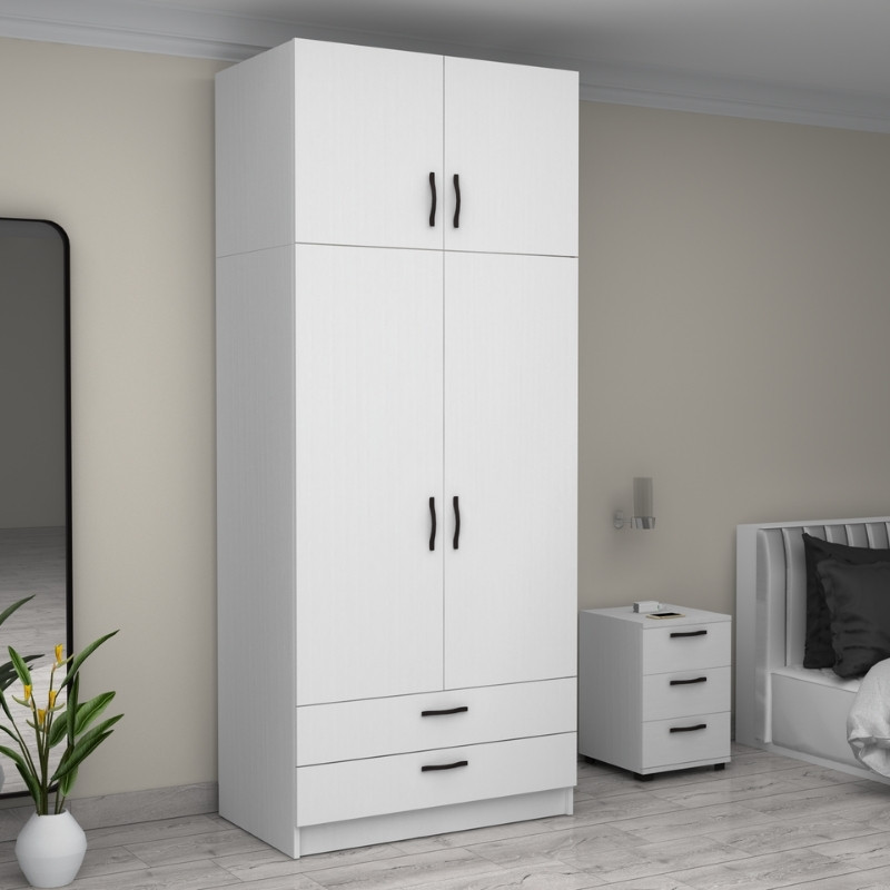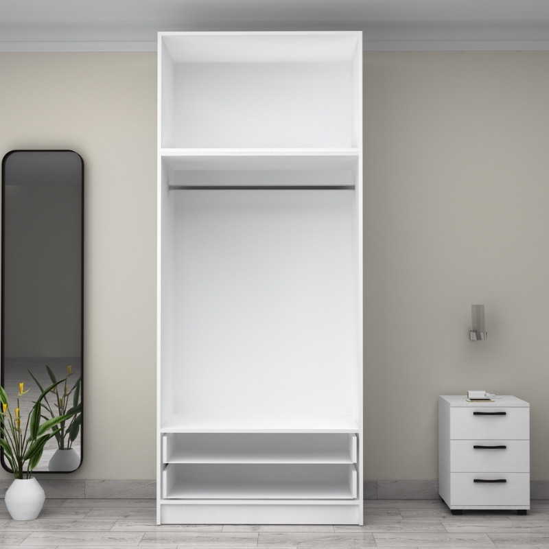 Ντουλάπα ρούχων Victoria Megapap δίφυλλη με πατάρι και συρτάρια χρώμα λευκό 100x60x240εκ.