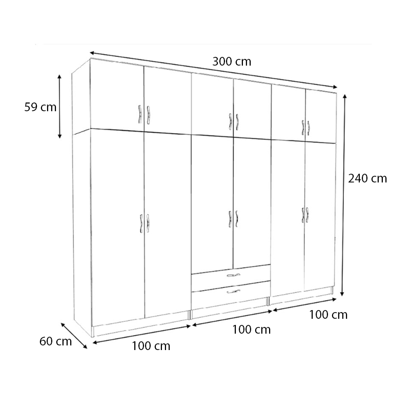 - Διαστάσεις ντουλάπας: Μήκος 300 x Βάθος 60 x Ύψος 240 εκ.