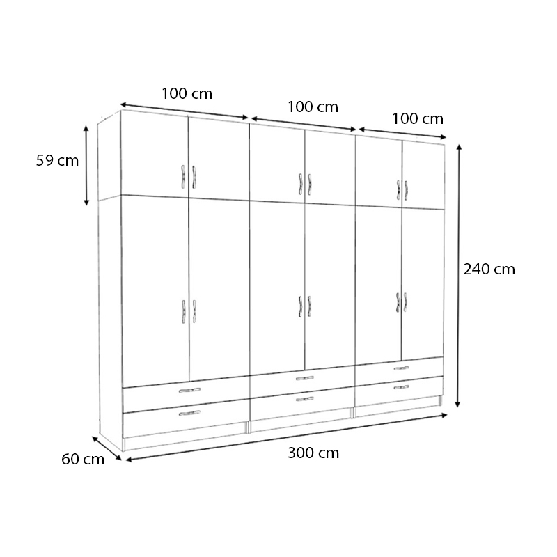 - Διαστάσεις ντουλάπας: Μήκος 300 x Βάθος 60 x Ύψος 240 εκ.