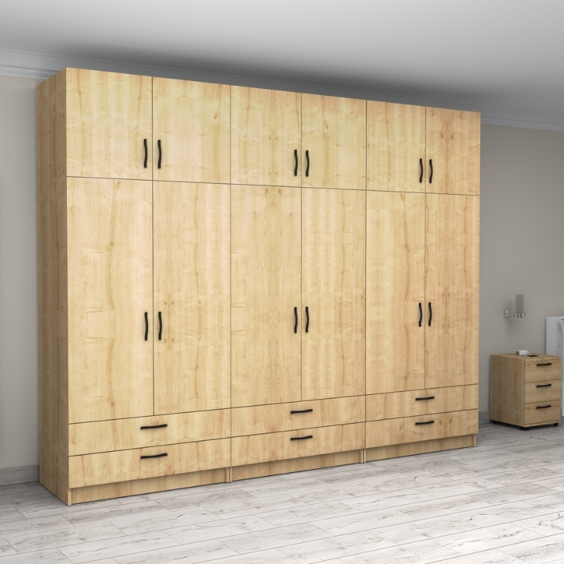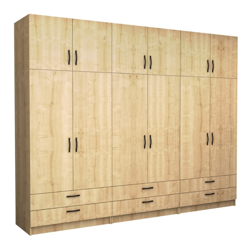 Ντουλάπα ρούχων Victoria Megapap εξάφυλλη με πατάρι και συρτάρια χρώμα φυσικό οξιάς 300x60x240εκ.