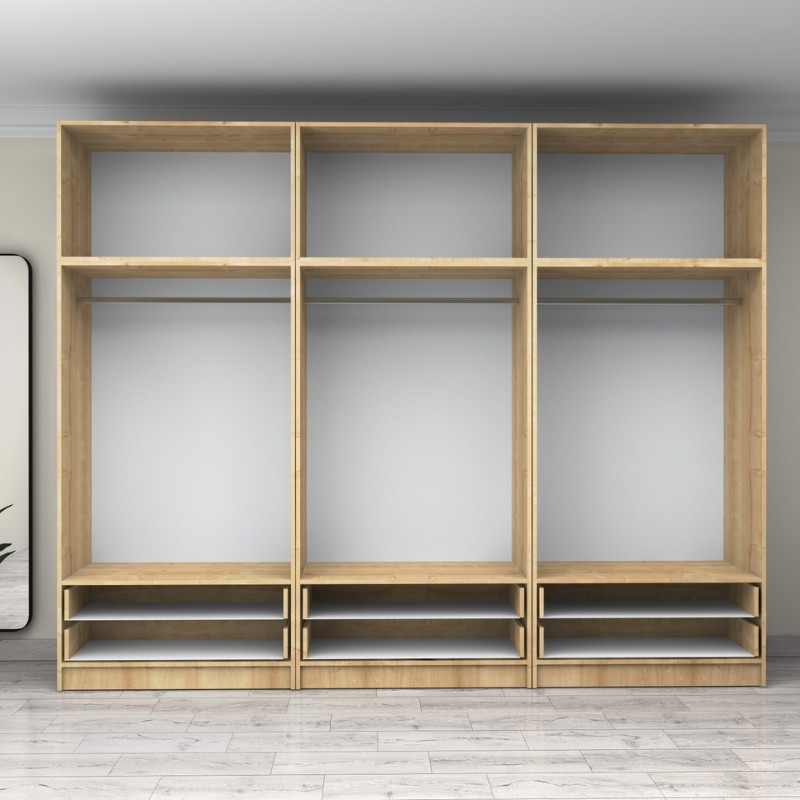 Ντουλάπα ρούχων Victoria Megapap εξάφυλλη με συρτάρια χρώμα φυσικό οξιάς 300x60x240εκ.