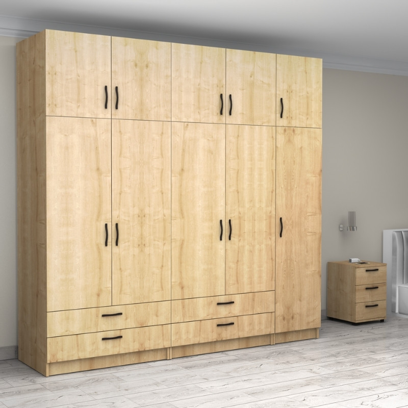 Ντουλάπα ρούχων Victoria Megapap πεντάφυλλη με πατάρι και συρτάρια χρώμα φυσικό οξιάς 250x60x240εκ.
