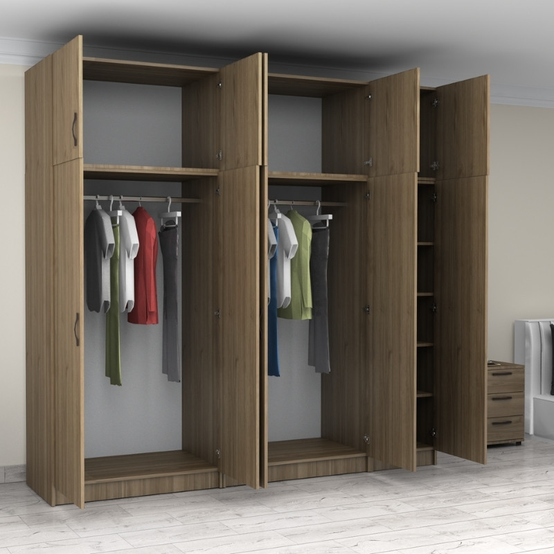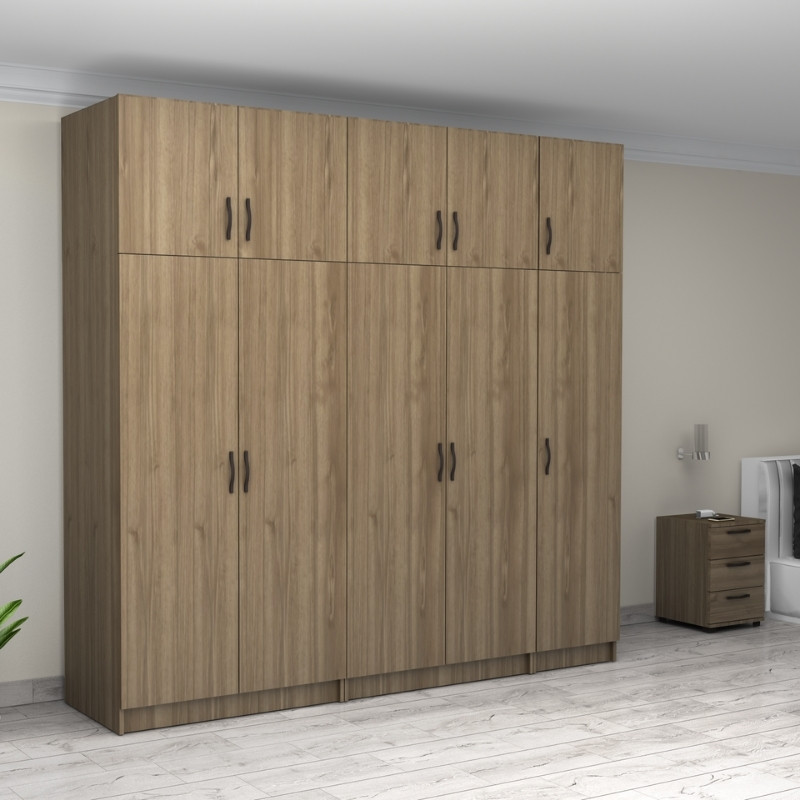 Ντουλάπα ρούχων Victoria Megapap πεντάφυλλη με πατάρι χρώμα καρυδί 250x60x240εκ.